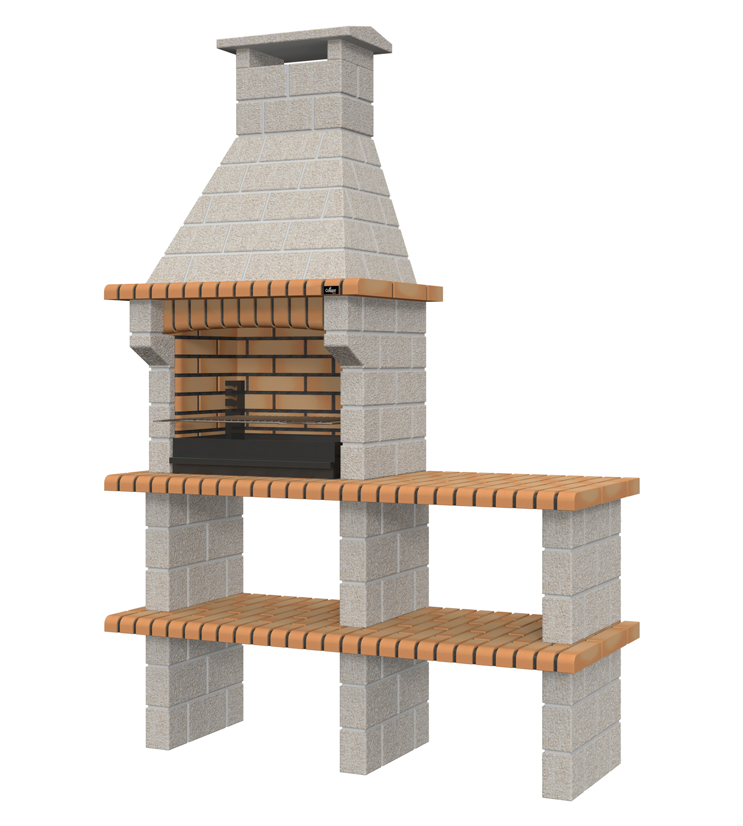 La barbacoa BRAGA es una barbacoa de estilo rústico de la marca Collippo. Los modelos de barbacoa BRAGA están disponibles en ladrillo tintado, templado o rojo. Datos técnicos: La barbacoa es de cemento, por lo que pesa mucho. Las piezas vienen por separado, apiladas en un palet. Zona de fuego y condiciones de uso: La zona de fuego es de ladrillo. Se puede utilizar tanto carbón como leña, controlando la cantidad y el tamaño de esta última. Se recomienda utilizar sólo carbón vegetal para el primer uso y añadir gradualmente leña para los usos posteriores. | Resumen de precauciones de uso | Antes de utilizar la parrilla para cocinar, déjela arder durante unos 30 minutos. No exponga el material a las llamas. Utilice el carbón vegetal con moderación. Deje que se enfríe antes de limpiarlo o guardarlo. No añada agua ni ningún otro líquido para enfriar, a fin de evitar choques térmicos.
