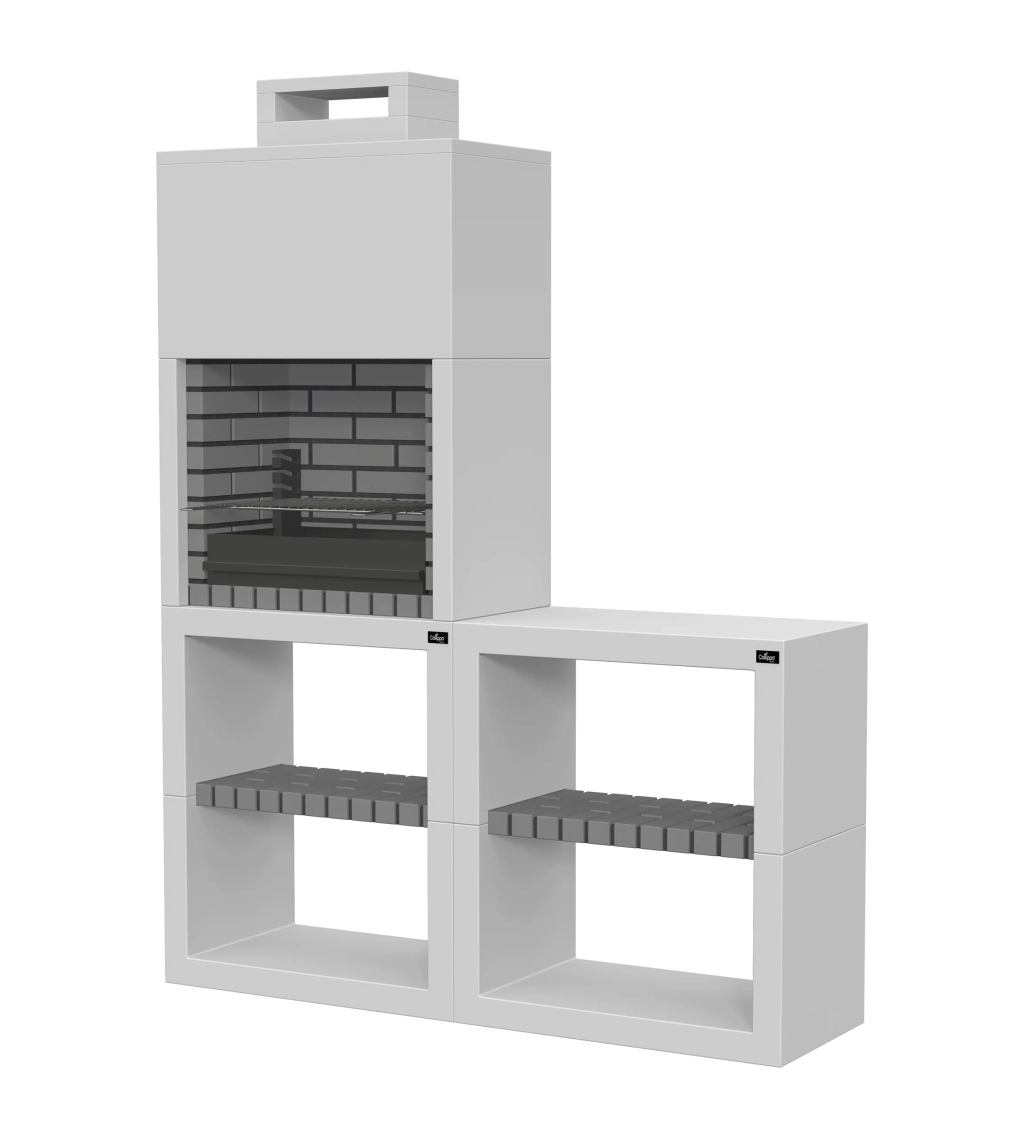 Datos técnicos: La barbacoa es de hormigón, lo que la hace pesada. Las piezas vienen por separado, apiladas en un palet. Zona de fuego y condiciones de uso: La zona de fuego es de ladrillo. Se puede utilizar tanto carbón como leña, controlando la cantidad y el tamaño de esta última. Se recomienda utilizar sólo carbón vegetal para el primer uso y añadir gradualmente leña para los usos posteriores.