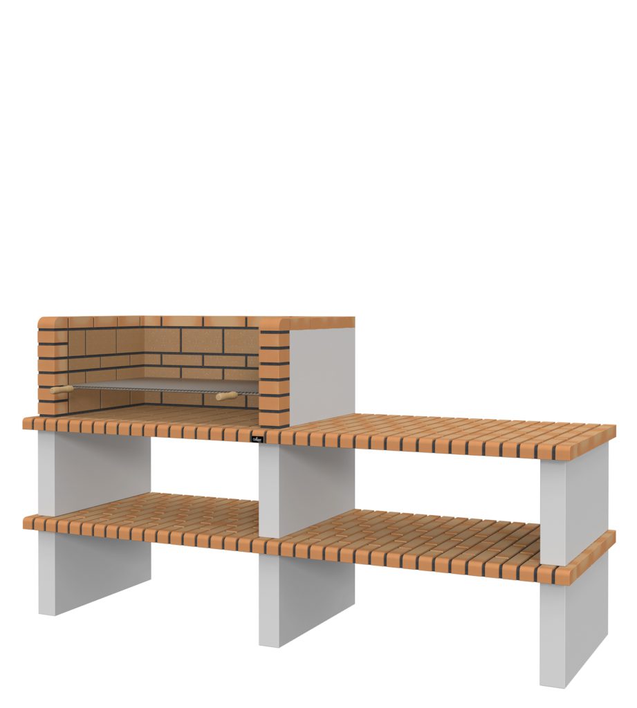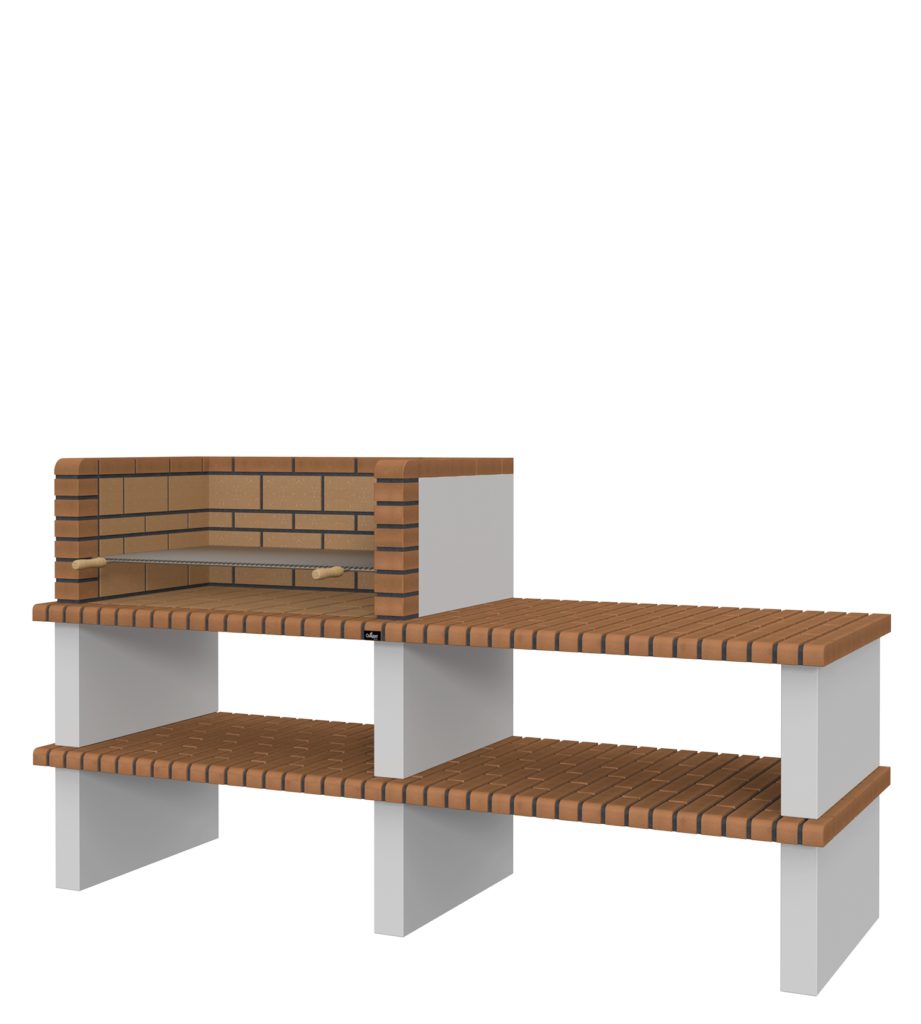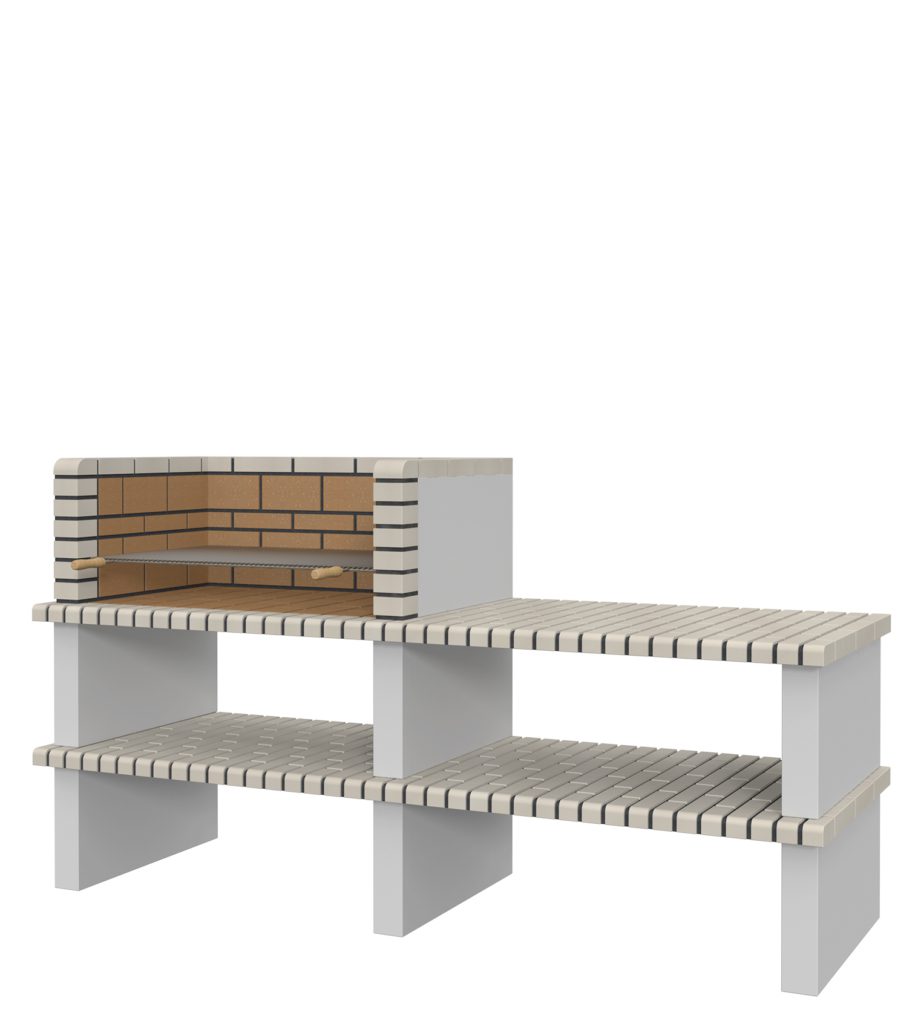La barbacoa NISA es una barbacoa de estilo tradicional de la marca Collippo. Los modelos de barbacoa NISA están disponibles en ladrillo tintado, blanco y templario. Datos técnicos: La barbacoa es de cemento, por lo que pesa mucho. Las piezas vienen por separado, apiladas en un palet. Zona de fuego y condiciones de uso: La zona de fuego es de ladrillo. Se puede utilizar tanto carbón como leña, controlando la cantidad y el tamaño de esta última. Se recomienda utilizar sólo carbón vegetal para el primer uso y añadir gradualmente leña para los usos posteriores. | Resumen de precauciones de uso | Antes de utilizar la parrilla para cocinar, déjela arder durante unos 30 minutos. No exponga el material a las llamas. Utilice el carbón vegetal con moderación. Deje que se enfríe antes de limpiarlo o guardarlo. No añada agua ni ningún otro líquido para enfriar, a fin de evitar choques térmicos.