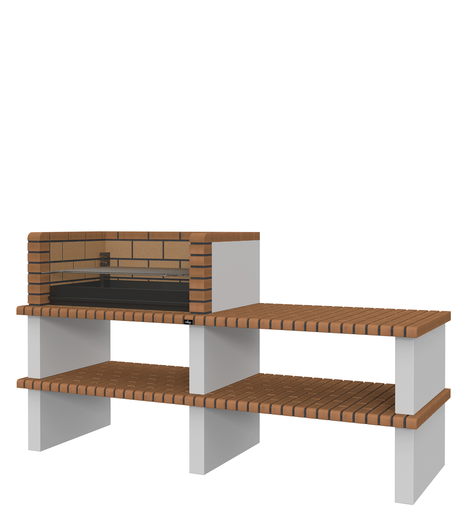 La barbacoa NISA es una barbacoa de estilo tradicional de la marca Collippo. Los modelos de barbacoa NISA están disponibles en ladrillo tintado, blanco y templario. Datos técnicos: La barbacoa es de cemento, por lo que pesa mucho. Las piezas vienen por separado, apiladas en un palet. Zona de fuego y condiciones de uso: La zona de fuego es de ladrillo. Se puede utilizar tanto carbón como leña, controlando la cantidad y el tamaño de esta última. Se recomienda utilizar sólo carbón vegetal para el primer uso y añadir gradualmente leña para los usos posteriores. | Resumen de precauciones de uso | Antes de utilizar la parrilla para cocinar, déjela arder durante unos 30 minutos. No exponga el material a las llamas. Utilice el carbón vegetal con moderación. Deje que se enfríe antes de limpiarlo o guardarlo. No añada agua ni ningún otro líquido para enfriar, a fin de evitar choques térmicos.