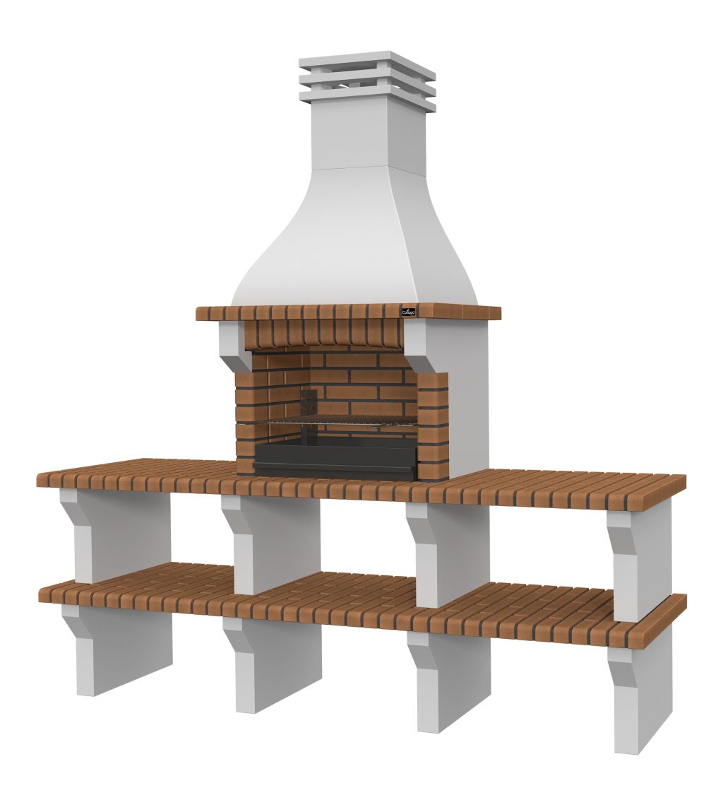 La barbacoa SEIA es una barbacoa de estilo tradicional de la marca Collippo. Los modelos de barbacoa SEIA están disponibles en ladrillo tintado, blanco o templado. Datos técnicos: La barbacoa es de cemento, por lo que pesa mucho. Las piezas vienen por separado, apiladas en un palet. Zona de fuego y condiciones de uso: La zona de fuego es de ladrillo. Se puede utilizar tanto carbón como leña, controlando la cantidad y el tamaño de esta última. Se recomienda utilizar sólo carbón vegetal para el primer uso y añadir gradualmente leña para los usos posteriores. | Resumen de precauciones de uso | Antes de utilizar la parrilla para cocinar, déjela arder durante unos 30 minutos. No exponga el material a las llamas. Utilice el carbón vegetal con moderación. Deje que se enfríe antes de limpiarlo o guardarlo. No añada agua ni ningún otro líquido para enfriar, a fin de evitar choques térmicos.